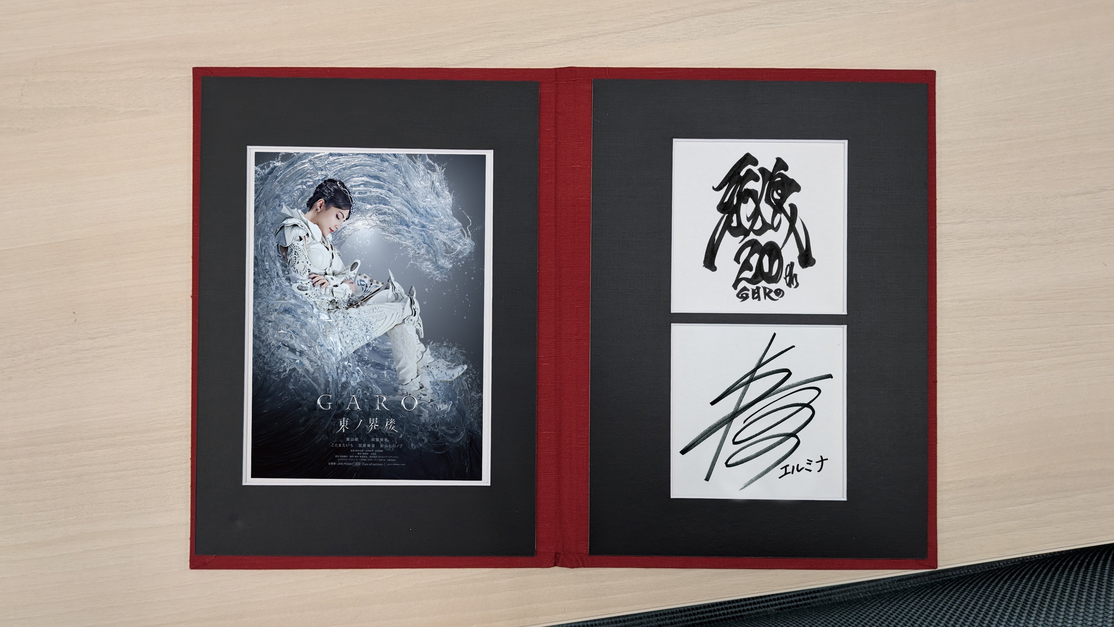 こちらは、牙狼<GARO>のキャストによる牙狼20周年記念トーク番組 「牙狼~語りし者~」に登場していただいた宮原華音さんのサイン入りラフネートル(見開き記念アルバム)です。