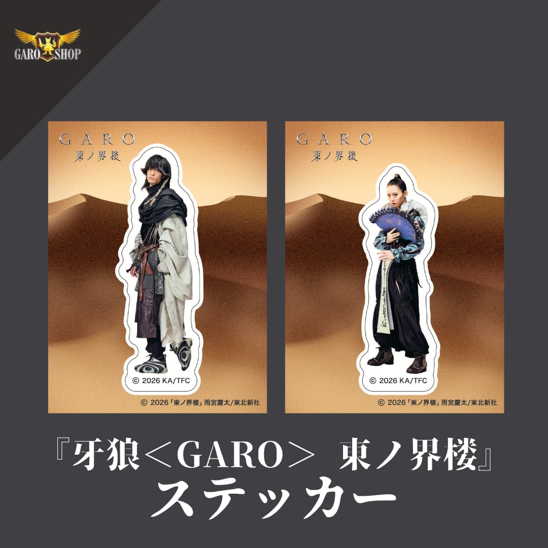 2026年1月29日より放送開始の最新作『牙狼<GARO> 東ノ界楼』より、メインキャラクターとロゴを揃えたステッカーセットが登場しました。